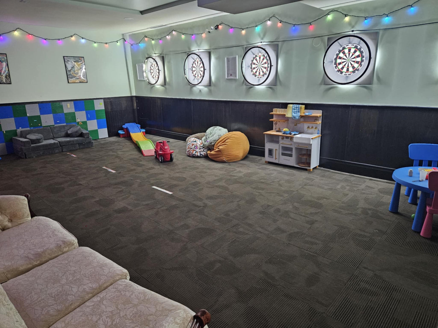 We've got a special space jam-packed with stuffies and lego's ready to spark your kid's creativity, and give you a chance to chow down in peace!