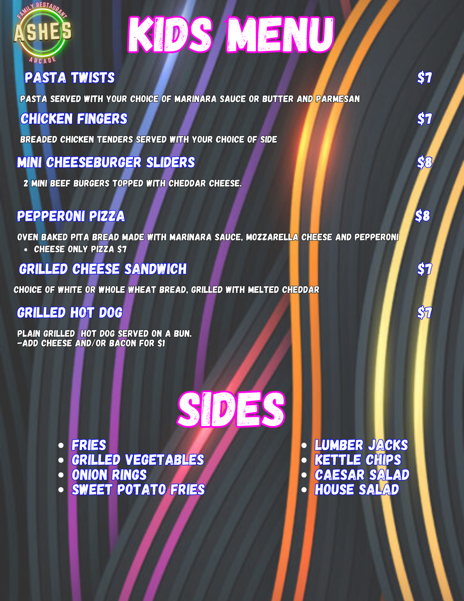 Kids Menu and Sides