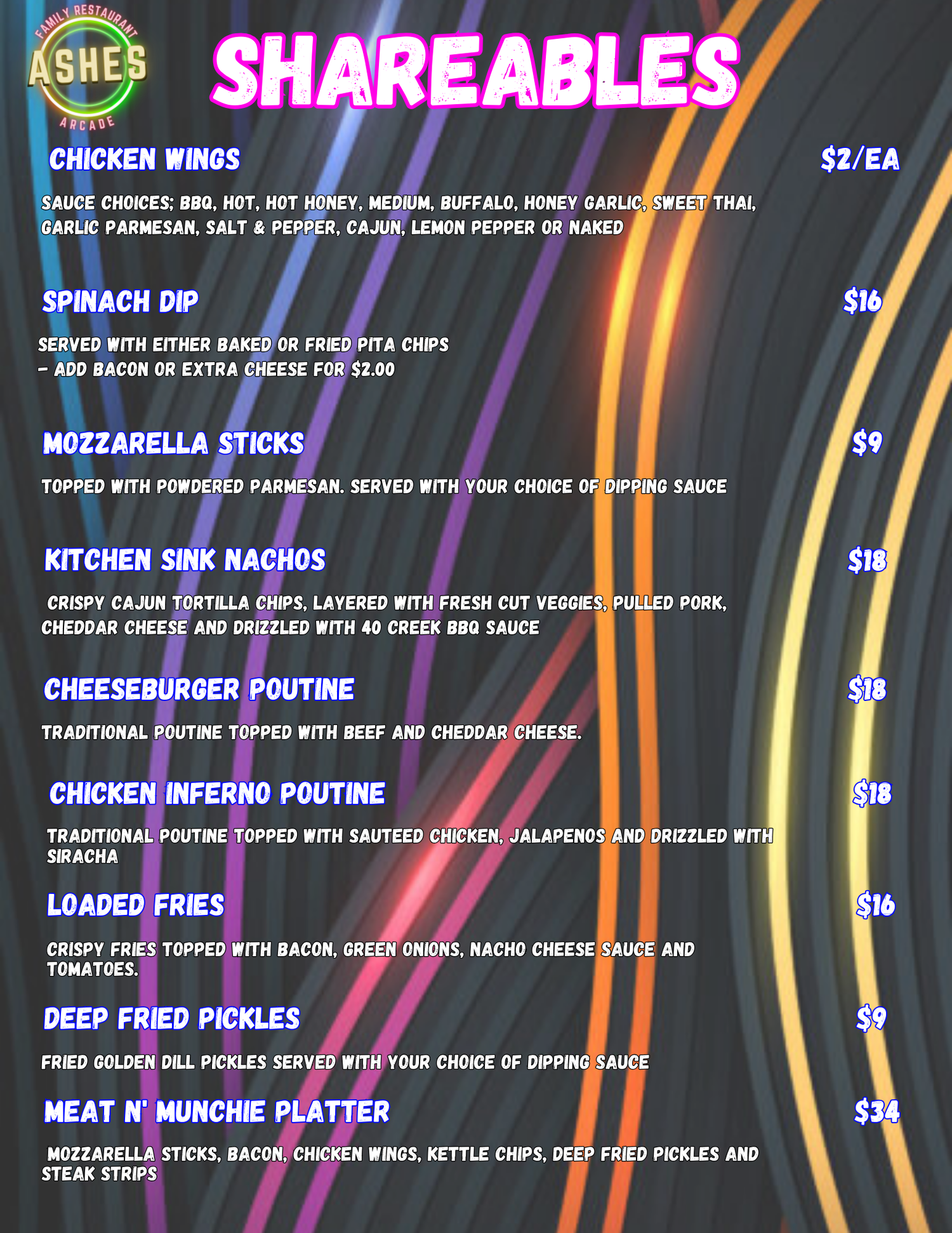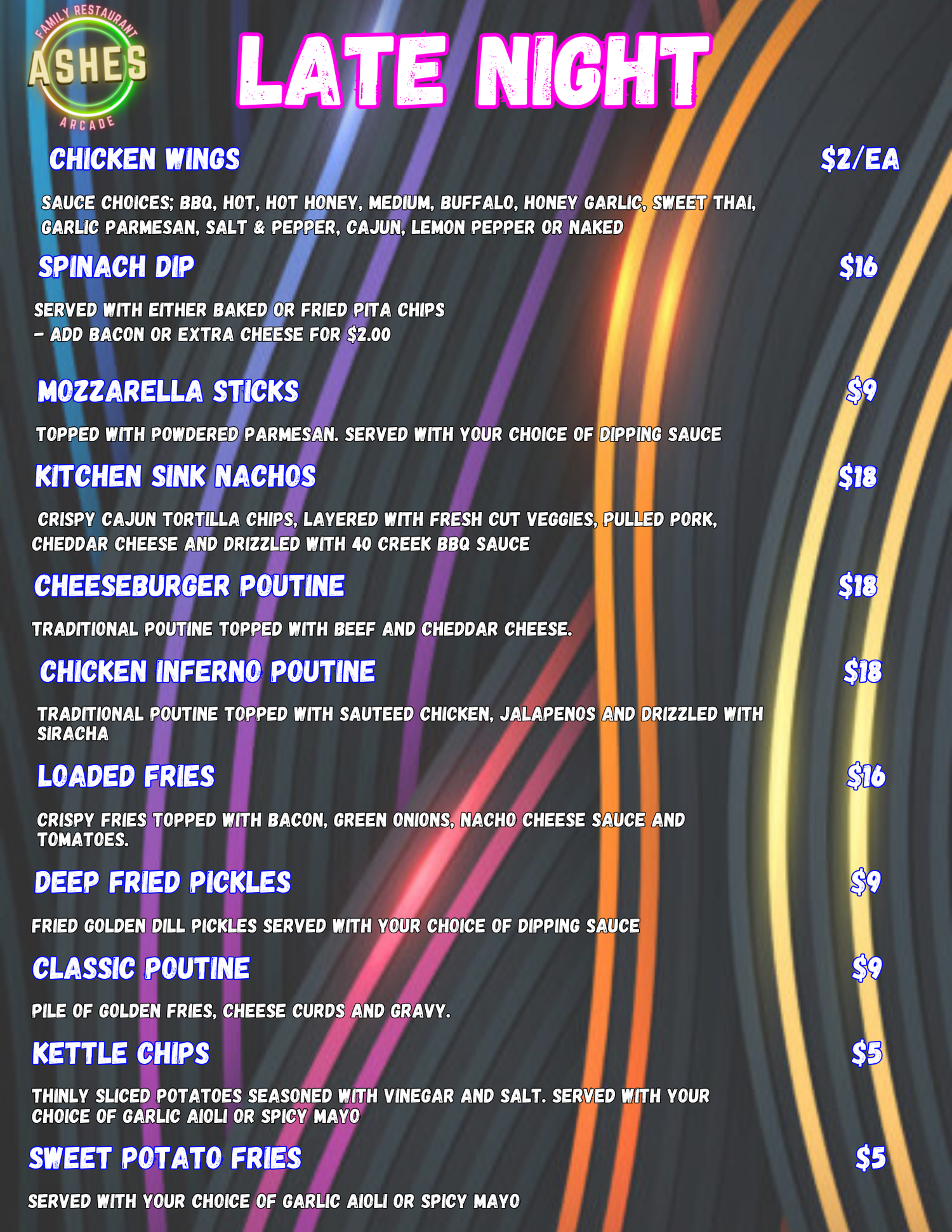 Our 9pm-12pm menu for Friday and Saturday nights!